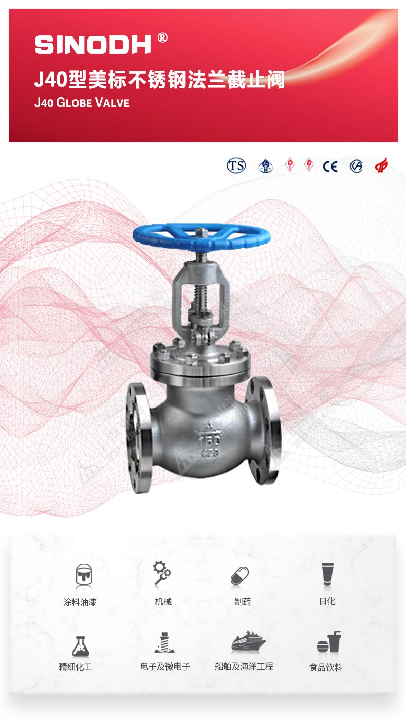 J40型美标不锈钢截止阀,为米兰在线平台,米兰(中国)自主研发生产。本产品的设计制造符合美国国家标准ANSIB16.34,美国石油学会标准AP1 6D和AP I 600要求,产品结构紧凑密、刚性好、封性性能优秀是一种最常见的启闭阀,利用闸板的上下工作来接通(全开)和截断(全关)管道中的流体介质。
