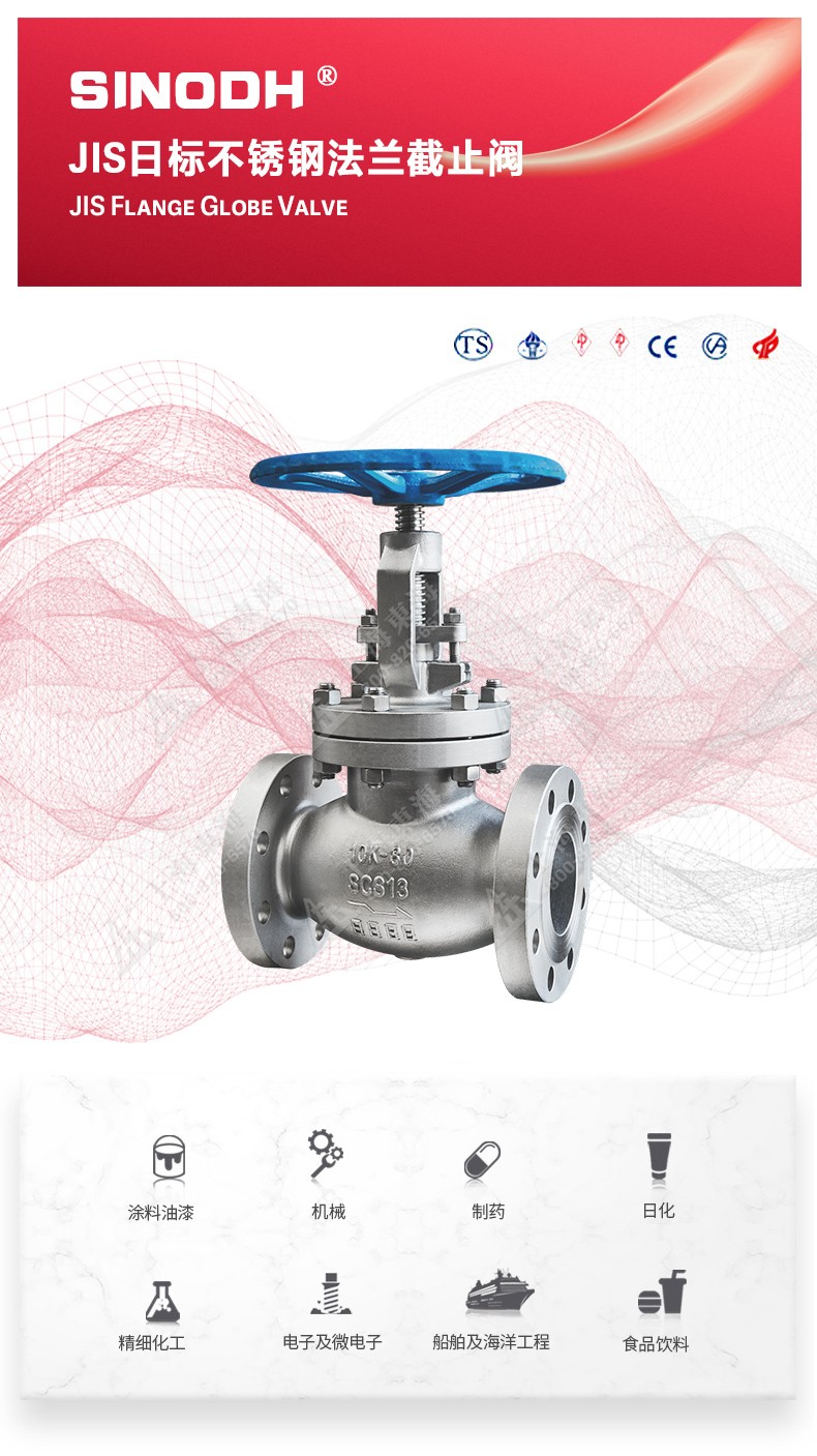 JIS日标不锈钢法兰截止阀,为米兰在线平台,米兰(中国)自主研发生产。本产品设计制造标准符合J1SB2071标准,其启闭件是圆柱形的阀瓣,密封面呈平面或锥面,阀瓣沿流体的中心线作直线运动。国标截止阀只适用于全.开和全关,一般不用来调节流量,定做时允许作调节和节流。