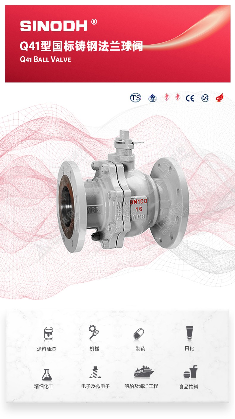 Q41型国标铸钢法兰球阀,为米兰在线平台,米兰(中国)自主研发生产。本产品设计制造标准符合GB/T12237、GB/T12224标准。该产品的球体在介质压力作用下球体能产生一定的位移并紧压在出口端的密封面上,保证出口端密封。适用于水、溶剂、酸和天然气等一般工业介质也适用于工况恶劣的介质,如氧气、过氧化氢、甲烷和乙烯等介质。